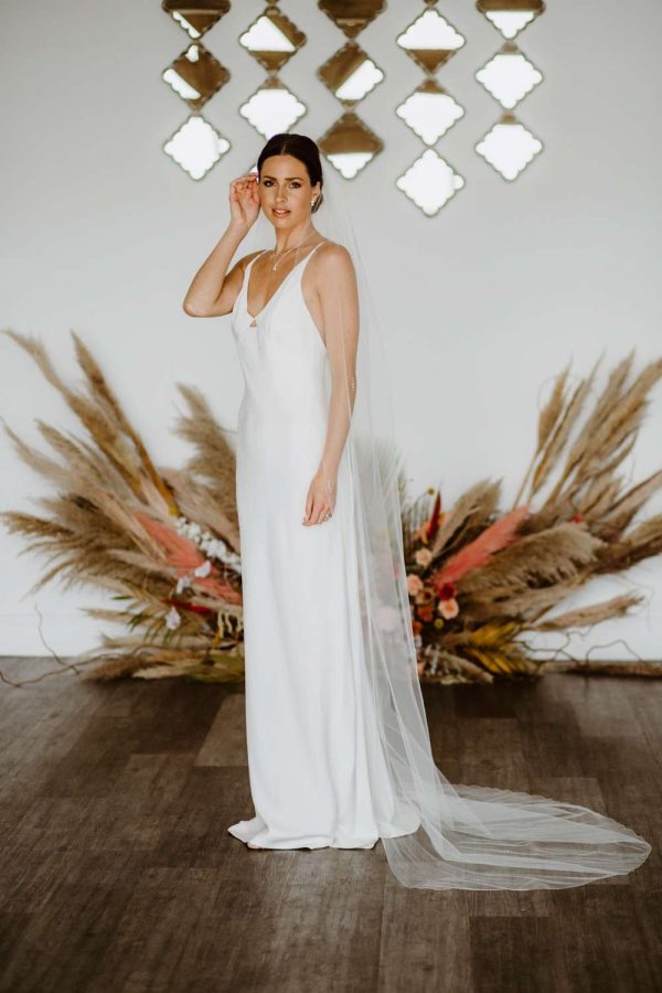 - Elegant Chapel Length: The Lola veil features a striking chapel length that cascades gracefully to the floor, creating a majestic and sophisticated silhouette. This length adds a dramatic touch to your bridal look, perfect for a grand and memorable entrance.